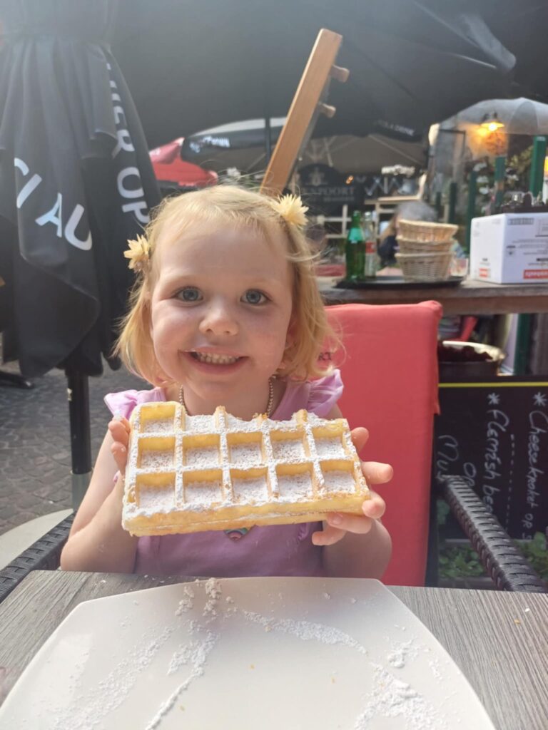 We were led through the town sampling the flavours of Belgium. Unfortunately, I left “Pony” in our bag, which was in a locker at the starting point—and that, it seemed, was the ultimate end of the world. Not even Belgian chocolate saved me that day. The tantrum of the century reinforced just how hard travelling with a toddler really is. Word to the wise: never forget “Pony.”
